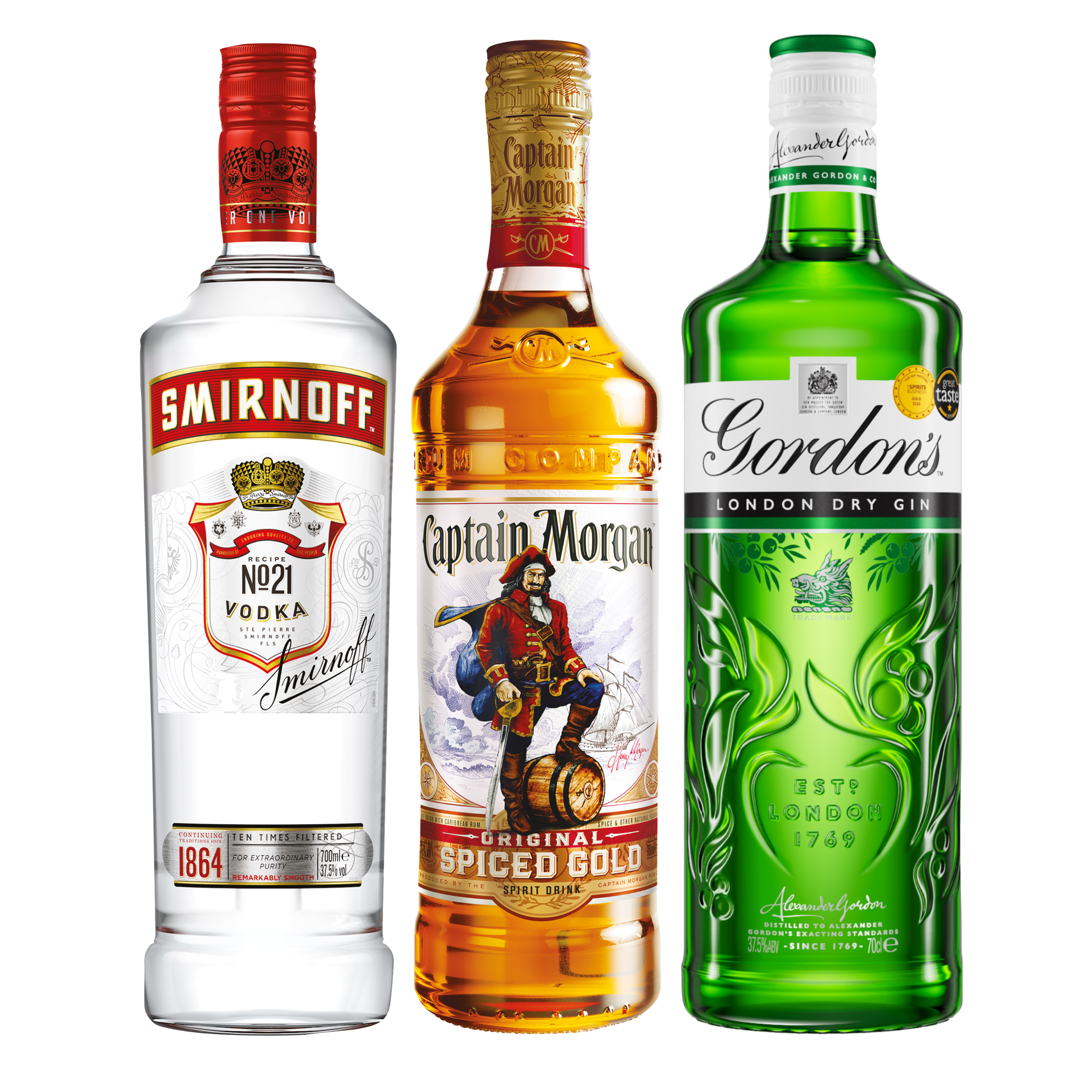 SMIRNOFF, GORDON’S GIN & CAPATAIN MORGAN SPICED RUM