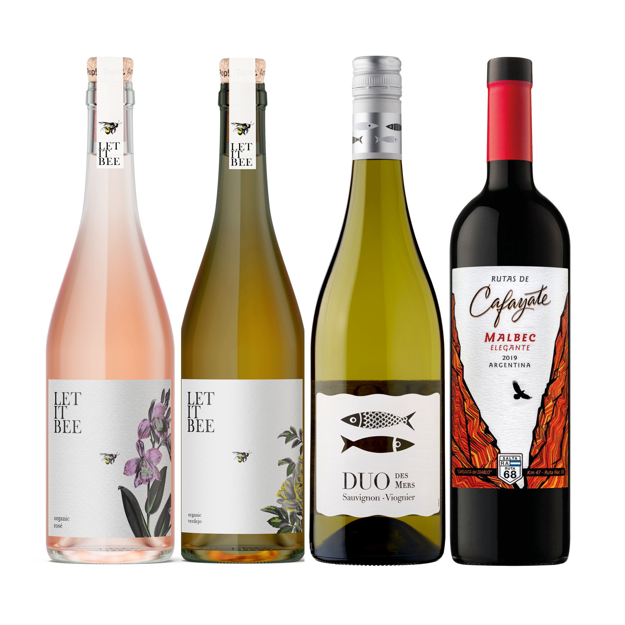 LET IT BEE, ETCHART RUTAS MALBEC & DUO DES MERS SAUVIGNON VIOGNIER