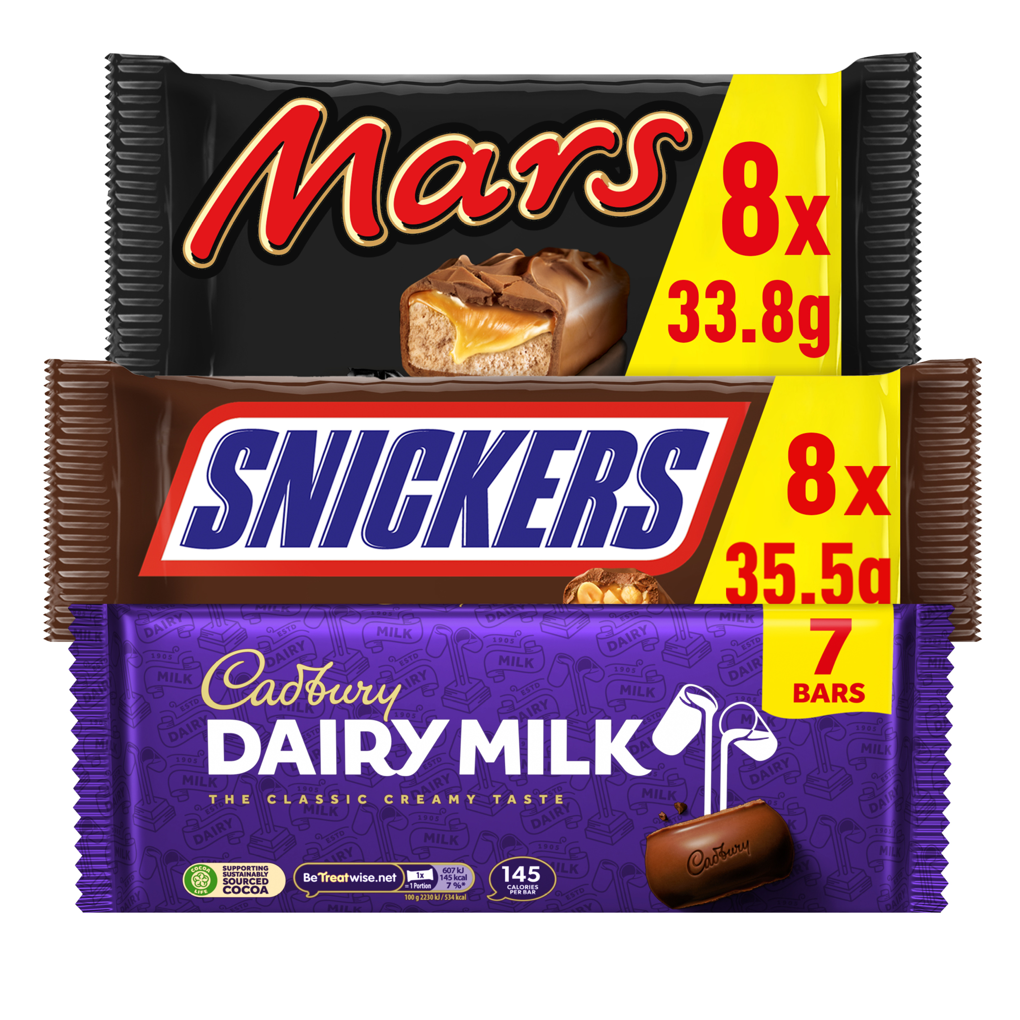 MARS / SNICKERS SNACKSIZE / CADBURY DAIRY MILK
