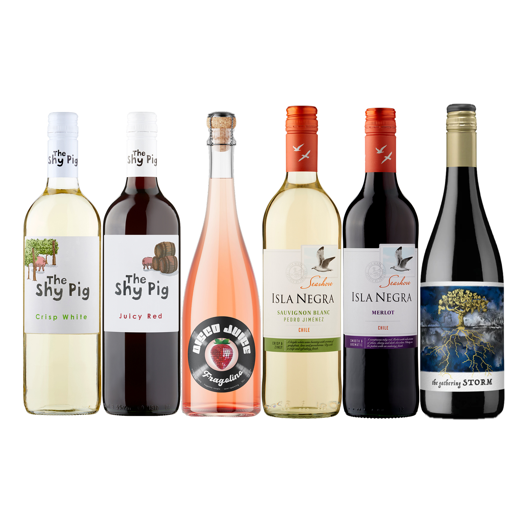 The Shy Pig Crisp White / Juicy Red Wine / Disco Juice Fragolino Rosato / The Gathering Storm Red / Isla Negra Sauvignon Blanc / Merlot