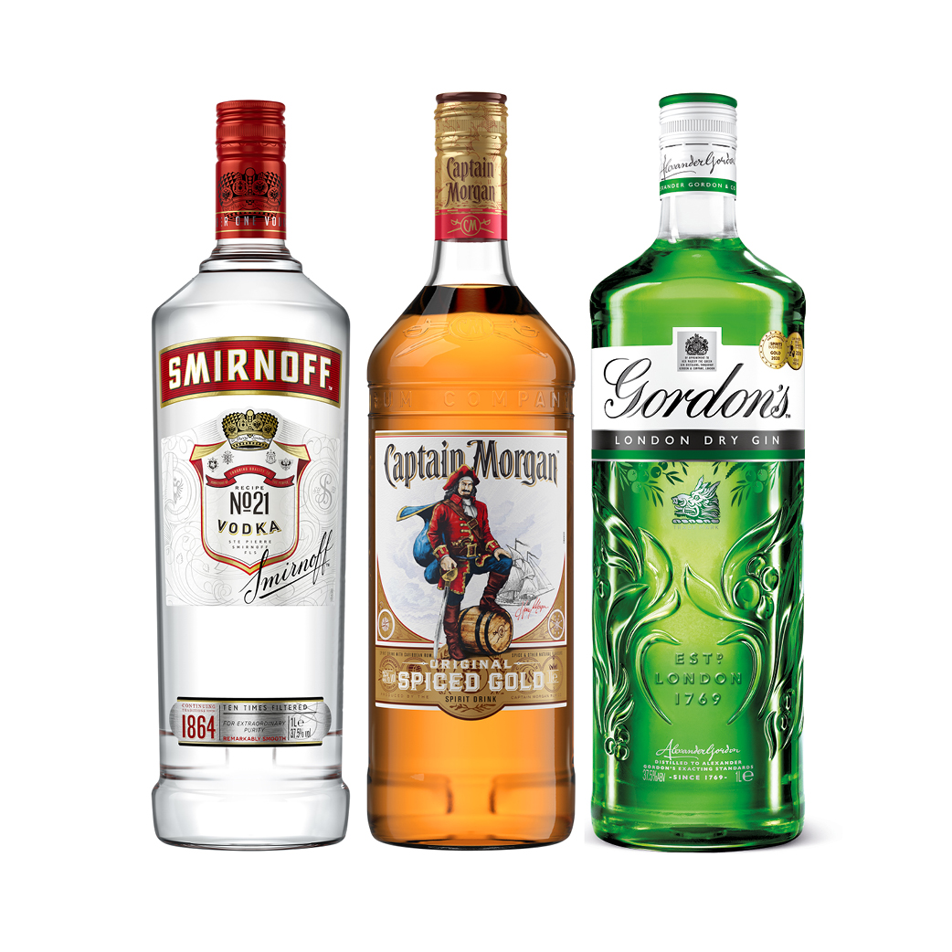 Smirnoff Red / Captain Morgan Spiced Rum / Gordon’s Gin